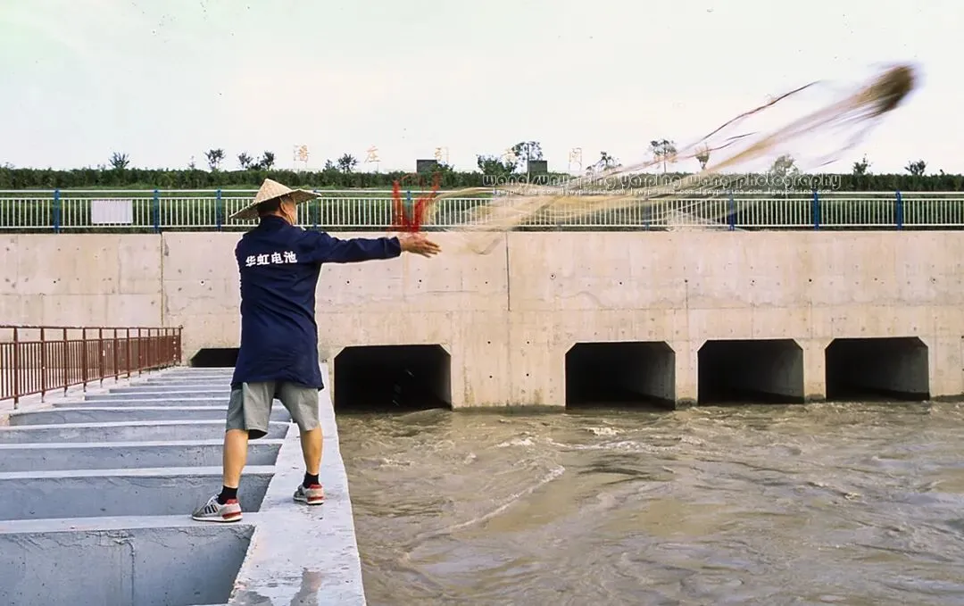 在潘庄引黄闸捕鱼的村民。
