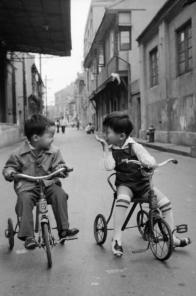 照片里的孩子不会知道,他们脚下的柏油路很快会被平整的水泥覆盖,弄堂也会在城市更新中渐渐消失。但他们此刻的快乐是真实的——三轮车的吱呀声、玩伴的鬼脸、弄堂里永远热闹的烟火气,这些记忆会像底片一样,在岁月里慢慢显影。