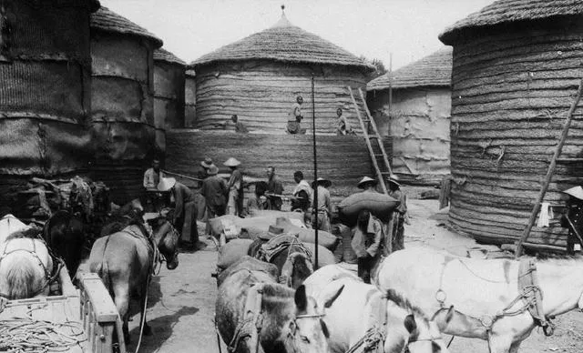 这个大院叫粮栈,圆鼓鼓的草顶仓一排排立着,车马挤在门口等卸,伙计手里攥着账本喊着号,东北盛产大豆,装袋、过秤、上车,合伙人分工明白,爷爷说以前秋后一忙,院里尘土都带着豆香。