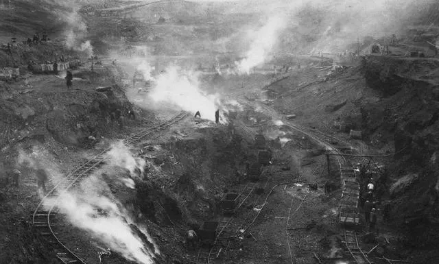图中这片黑黢黢的叫露天煤矿,铁轨从坑里扯出来,矿车一溜烟地跑,烟雾裹着寒气,工人沿坡往下走,铲、装、推,动作利落,矿上讲究一件事,天不亮就得下手,手心里总是黑亮黑亮的。