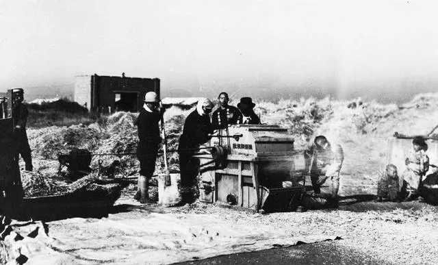 这台机子是脱粒机,村民把麦秆塞进去,穗子抖抖就分开了,旁边垫布接籽粒,效率一下子就上去了,爷爷看了直说,机器就是快,手不够用的时候它顶上。
