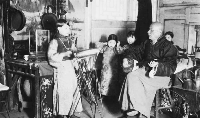 男人牵着小猴走街串巷,猴子学人样作揖翻跟头,围的人拍手起哄,主人收起道具挑起担,天黑前赶着去下一个街口,旧时光里的人,都在风里雪里谋口饭吃,这些照片留住的,不只是场景,更是咬牙过关的劲头。