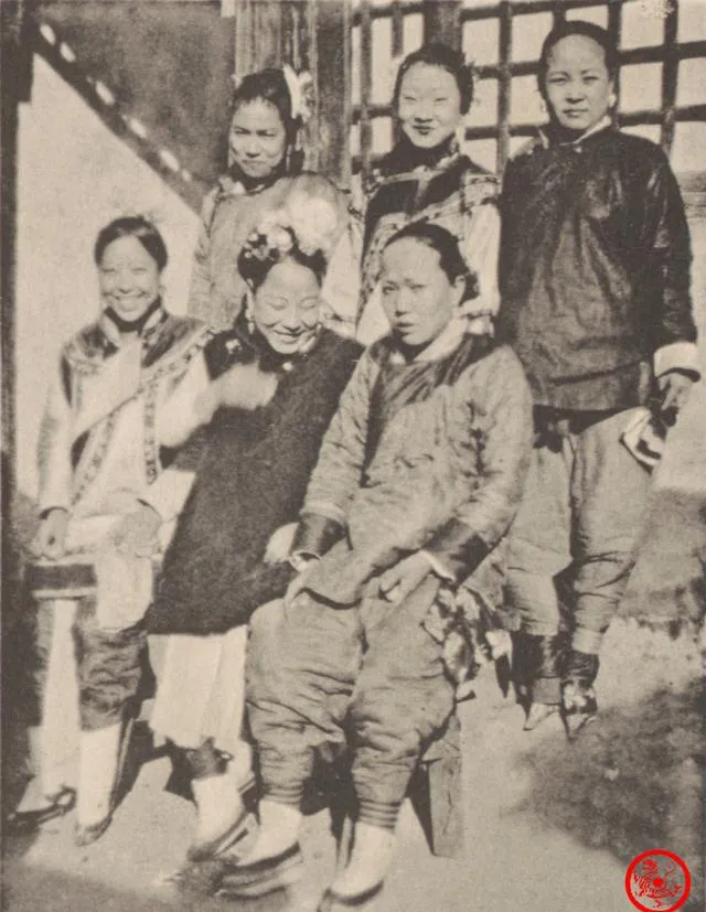 六个女子有坐有站,绒花别在鬓边,衣襟被风一吹起了细褶,有人正低头掩笑,有人抿着嘴角看镜头,笑是笑了,脚下的小鞋却勒得紧,坐在前排那位手腕上还套着镶边的袖口,阳光打在脸上,像擦了层粉的亮,人一乐,门槛上那点灰都显得暖了些,妈妈看见这张照片总要说一句,女人呀,最懂彼此的眼神,谁也不问为啥笑,只在那一瞬偷个清净。