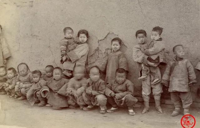 这群孩子靠着墙排一溜儿坐着,有抱弟弟的,有拎着裤脚的,脸上泥点子都还在,衣裳多是打补丁的粗布料,袖口宽,裤脚肥,鞋帮塌塌的,右边那位小姑娘怀里抱着一个小娃,脚上裹的是小脚,奶奶看见这张照片直摇头,说那会儿小女孩早早就学大人的事,家里缺人手,谁懂事谁上前。