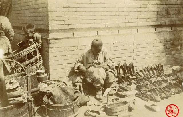 这个人蹲在墙根,手里攥着锥子,脚边一排排鞋,男鞋女鞋都码得齐整,旁边木桶里塞着破旧鞋帮和补皮,孩子蹲在一旁扒拉着篮筐,阳光斜过来,鞋底上的线头亮了一下,妈妈说,以前穿补丁鞋很正常,烂了就补,不丢人,鞋匠走街串巷,一把锥子一团麻线就能养家,现在坏了点鼠标就换新的,那会儿是一针一线续命。