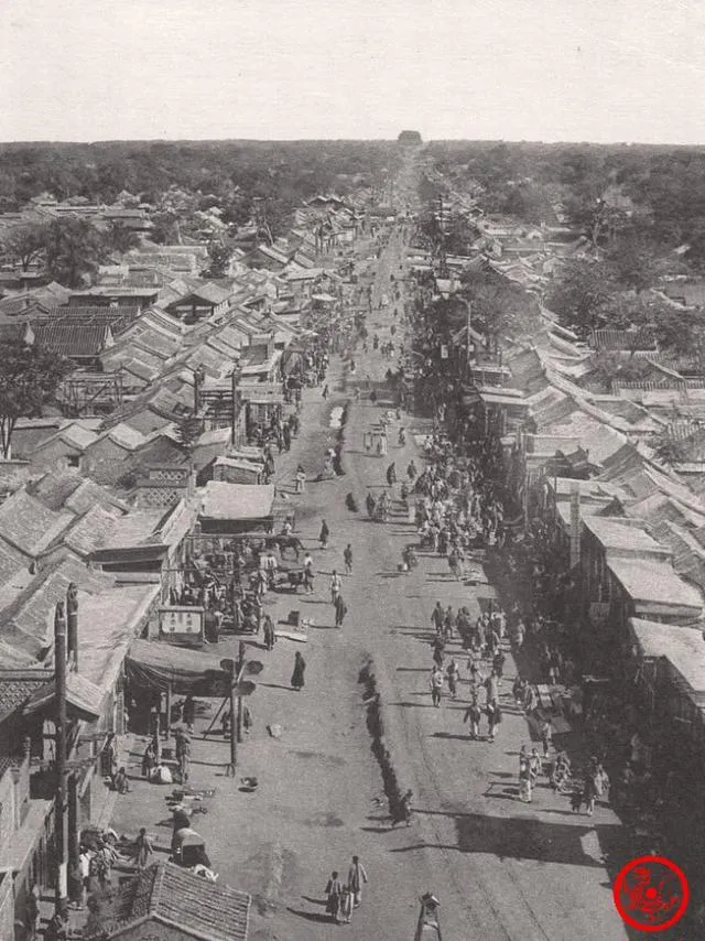 这一条街望过去要多长有多长,屋檐层层叠叠,路中间坑洼清晰,行人密密麻麻,摊贩把棚一支,布匹、草药、炊具都摆出来了,老北京有句顺口溜,**“无风三尺土,有雨一街泥。”**一语中的,放在今天,环城路一圈圈绕,扫地车一趟趟过,尘土被封在记忆里了。
