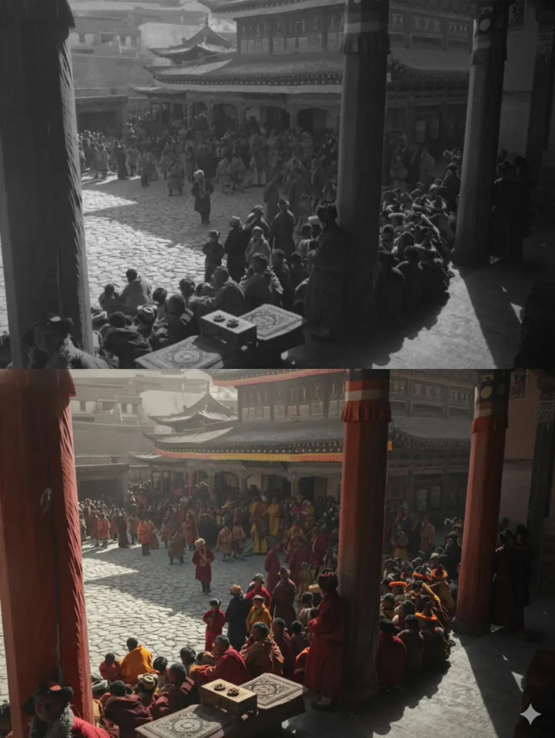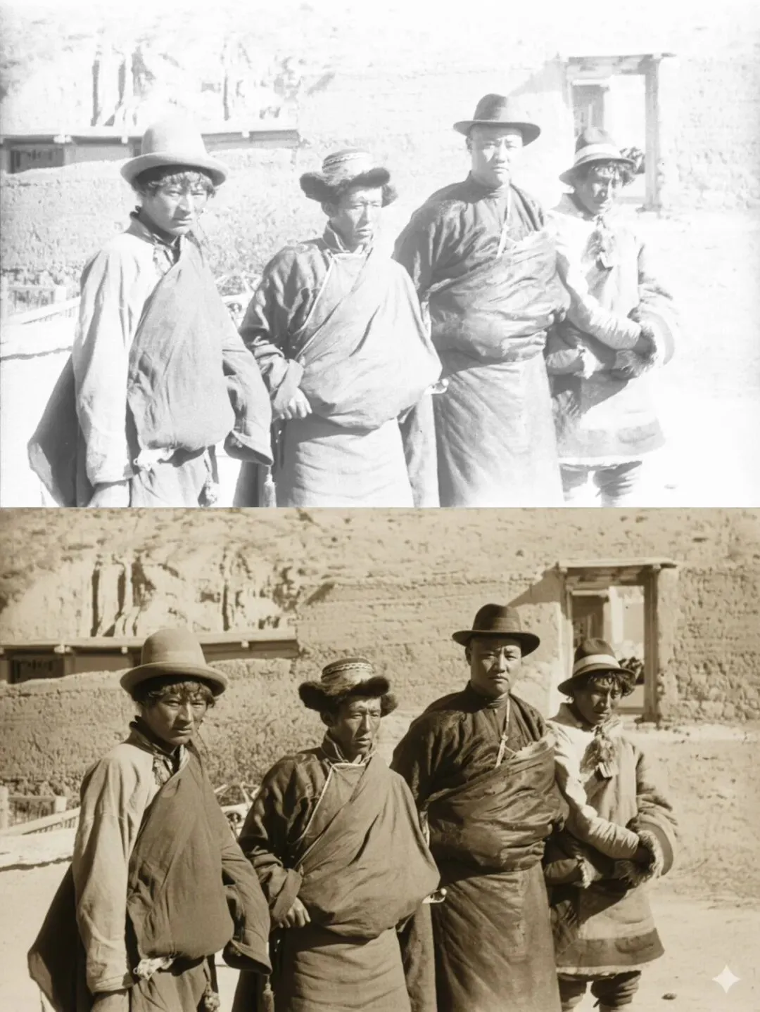 你发的这些对比图特别典型:上半张是“信息缺失/曝光失控/颗粒与划痕”,下半张是**“结构被找回、色调更稳、上色更克制”**。老照片修复做得好不好,不看“颜色多漂亮”,看三件事: