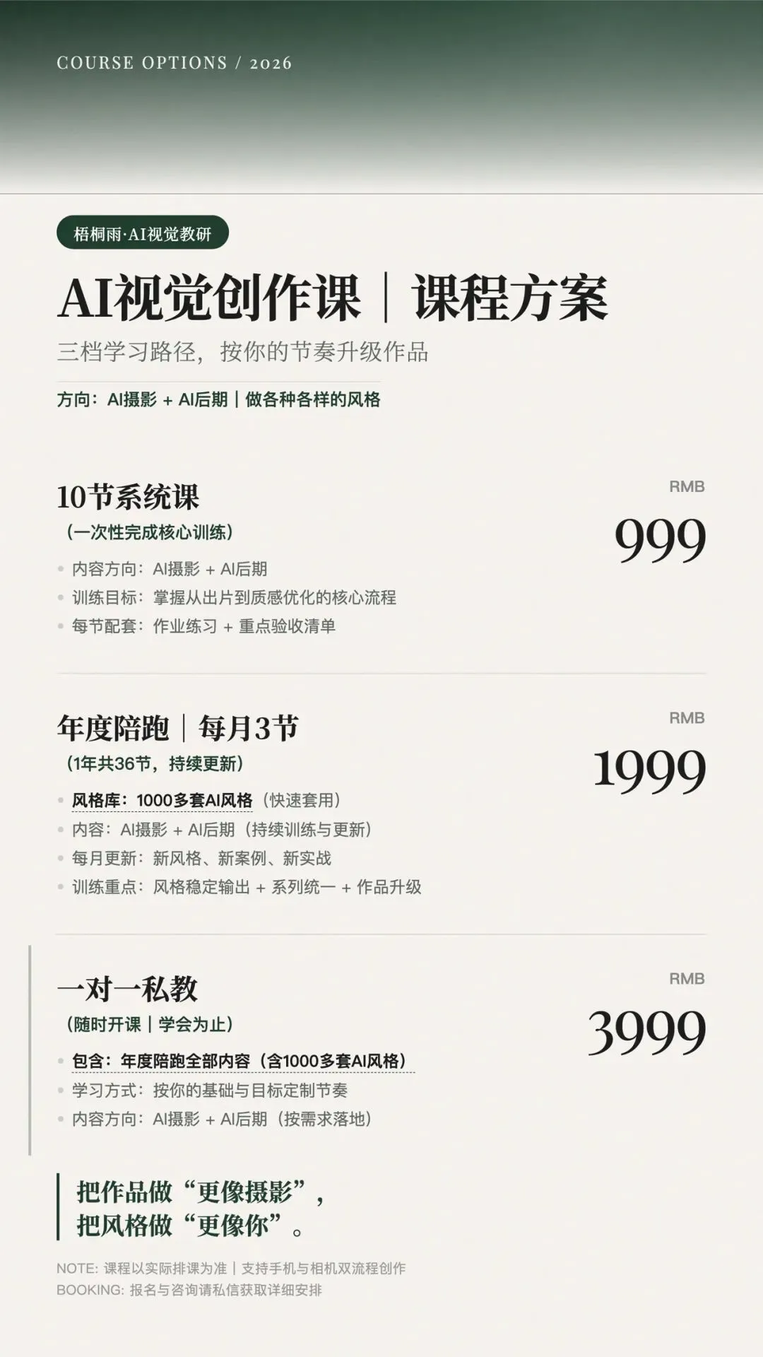 一对一私教 3999:随时开课,学会为止,含年度陪跑全部内容(含1000多套AI风格)
