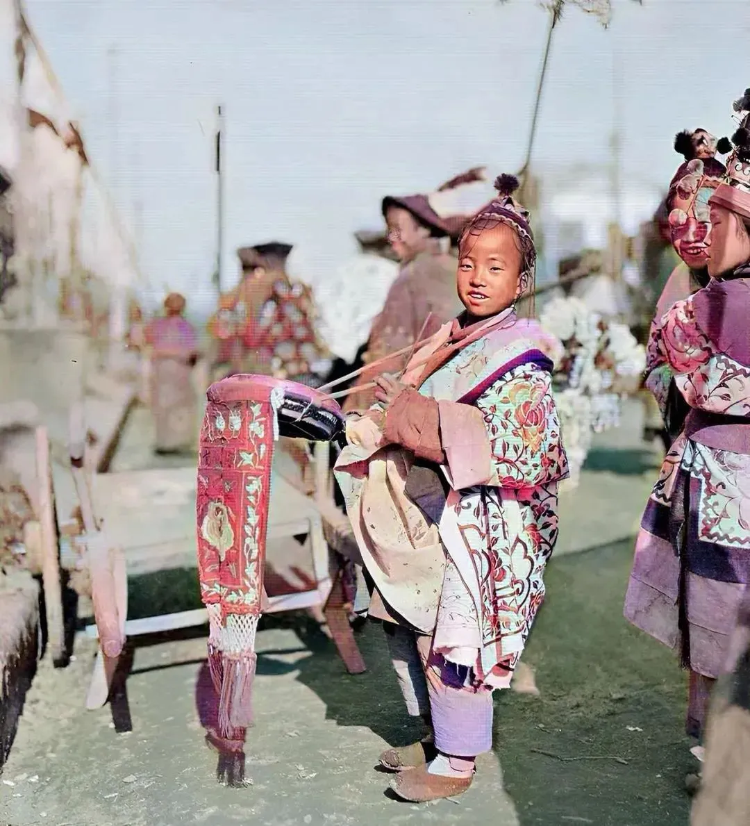 本组照片原为黑白色,后经小编使用AI技术上色,因个人技术拙劣,上色照可能略显失真,但小编仍然相信它们比黑白照片更能真实地再现清朝末年的社会面貌。