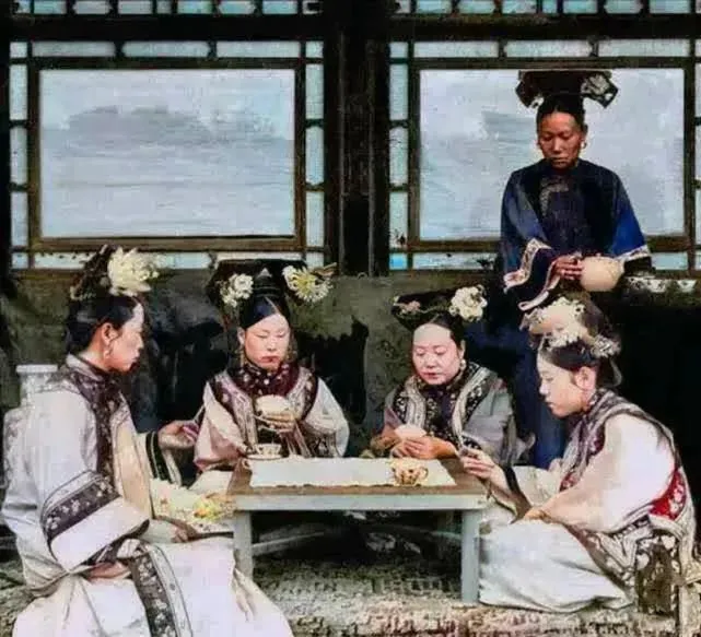 清末上色老照片:后宫妃子围坐在一起打牌,儿童在农田采摘罂粟......