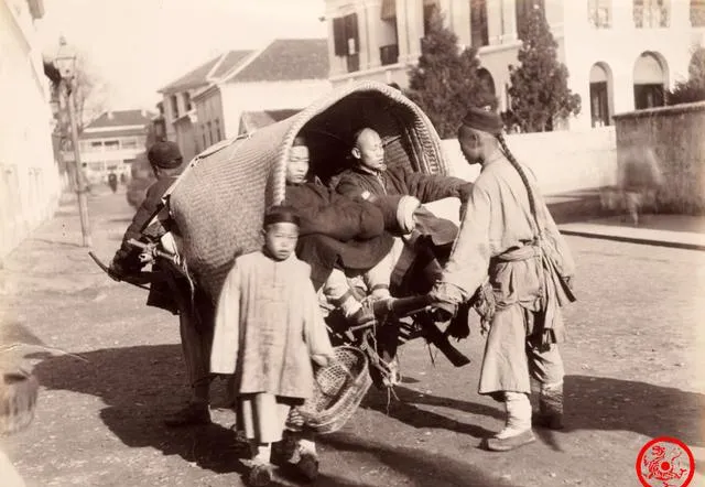 这个编着棚子的独轮车是城里常见的生意,前头一只厚实的木轮,车身骨架绑着竹篾罩顶,能遮风,也能拿来摆排场,车夫系着腰绳在前面拽,旁边再跟个小伙计扶着,两三个人一抬一扶,稳稳把客人送到巷口转角,妈妈说那会儿进城办事,找不到轿子就招这种独轮车,价钱公道,坐着也不颠得慌,现在的出租车一按喇叭就来了,当年全靠嗓门吆喝,路口守着等客,日头落了才收工。