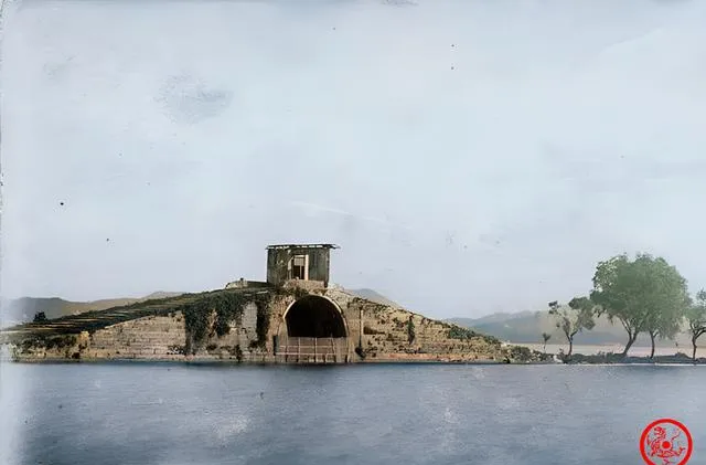 这座桥外形像一条弯月,桥身上爬满了藤蔓与杂草,中间竟然立着一道门,听老人说晚上门一合,桥上就清净了,谁也别想摸黑过去,现在的断桥游客扎堆,桥身修得平整宽阔,这张照片里却是另一个世界,荒凉却带着水汽的味道。