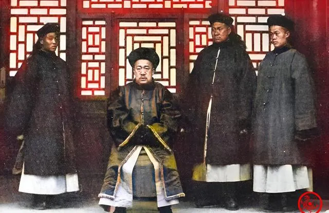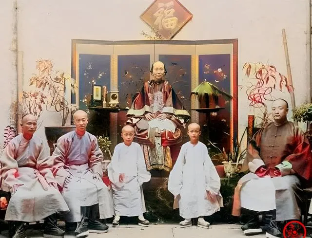 这位太监坐得端正,衣袍厚重,上头绣着蟒纹与花枝,衣料泛着丝光,手边摆着盆栽与香炉,屋门的格子透出细细的光,气派倒不输官员,过去人常说有的高等级内侍能呼来喝去,照片上看不见声气,却能看出那股不容置疑的稳,和如今讲求制度的岗位不同,那时候的权力多半靠近身与得宠来衡量。