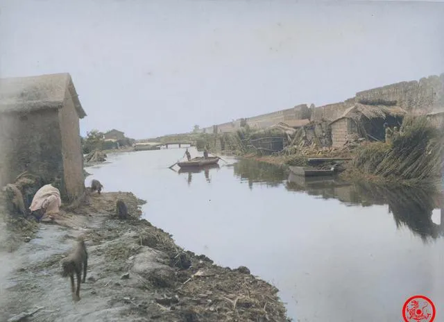 这条河面不宽,河岸泥泞,芦苇压到水里,远处土坯墙绵延,几只小船慢慢划过去,水面像一条铅灰色的布,遮不住的是生活的气息,岸边的孩子追狗跑,家家门口堆着苫草,那时候护城河更多像排水沟,真要防守也顶不了多大用处,现在城墙早拆了,河道也整治得平直干净,留下名字让人想一想旧城的模样。