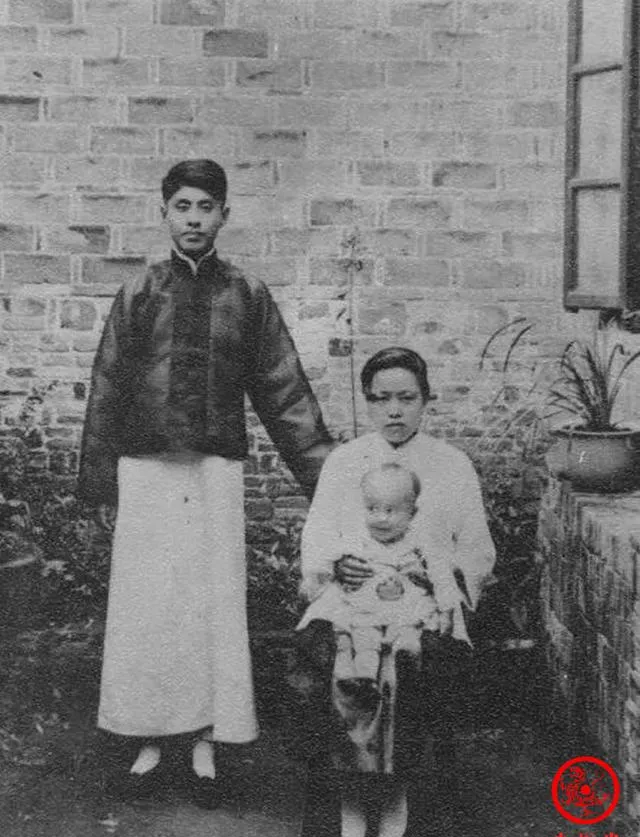 图中小院里砖墙粗粝,盆景搁在窗下,抱在怀里的胖娃娃就是他,旁边一站一坐,是父母亲,那时候的拍照还要端坐不动,衣料发亮,扣子收得紧紧的,合肥的阳光淡淡,照在孩子额头上,有点眯眼的可爱劲儿。