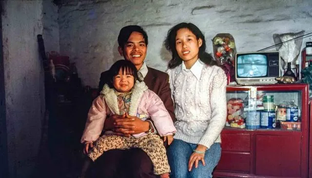 这个小屋里最显眼的是柜上的小电视,旁边堆着罐头瓶和搪瓷缸,爸爸抱着孩子坐在中间,笑得特别实在,墙是白灰抹的,灯光打在毛衣的线头上都清清楚楚,奶奶总说,以前拍一张照要斟酌半天,可只要一家人在一块儿,哪怕背景简陋也照样是好光景。