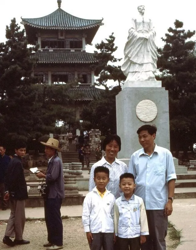 这个景儿熟,雕像背后是飞檐楼阁,游客三三两两,爸爸让我站在前面别动,咔嚓一声就定格了,爷爷说出门要抓紧时间看一眼古人,回去才知道路没白走。