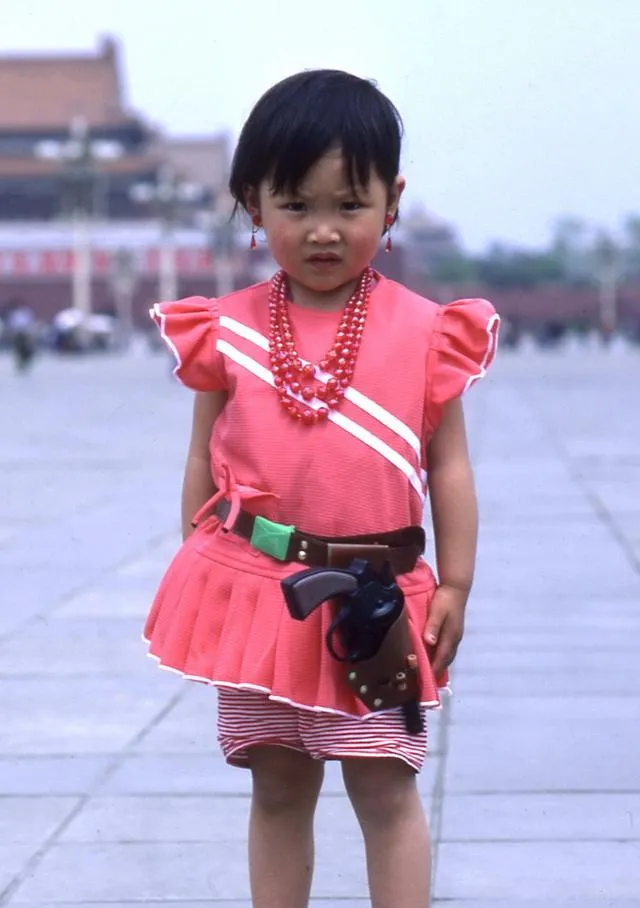 这位小姑娘红裙子配红项链,腰里一条玩具皮带,不爱红装爱武装是那个年代的流行语,脸蛋鼓鼓的,眼里有股不服输的劲,奶奶看了直夸,女娃也能顶半边天。