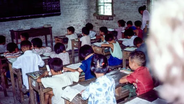 这个教室砖墙糙糙的,窗棂斑驳,孩子们挤着长板凳,写字本摊成一片,老师从后门绕到前头,粉笔敲一下桌角就安静了,那时教材少,抄一页就能背一页。