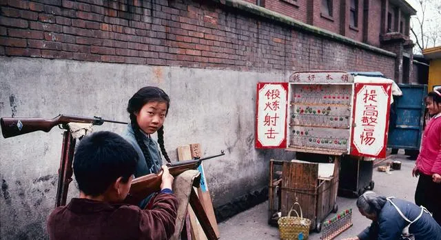 这个摊位的招牌写得直来直去,气枪抵着肩窝,靶子一排扣在木板上,老板娘喊一声提高警惕锻炼射击,小孩子端着就想当英雄,赢一枚糖票乐一天。