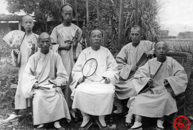 图中这群人穿着宽袍长褂,手里不是团扇就是折扇,坐姿站姿都端着,可偏偏表情管不住,右一像刚准备说“啊”,右三像被人冷不丁喊了一声“哟”,摄影师一摁快门,半点修饰都来不及,成了**“最早的抓拍”**,小时候翻奶奶的木箱子见过类似的合影,她笑说那时拍照花钱不便宜,大家紧张得很,脸一僵就好像谁欠了他似的。