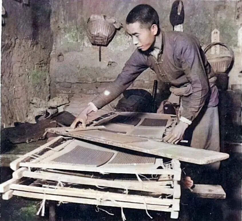 制作线香的工人。“线香”早在宋明时期就已经出现。线香燃烧时间比较长,所以又被称为“仙香”或“长寿香”,古时候寺庙常以线香长度作为时间计量的单位。因此也被称为“香寸”