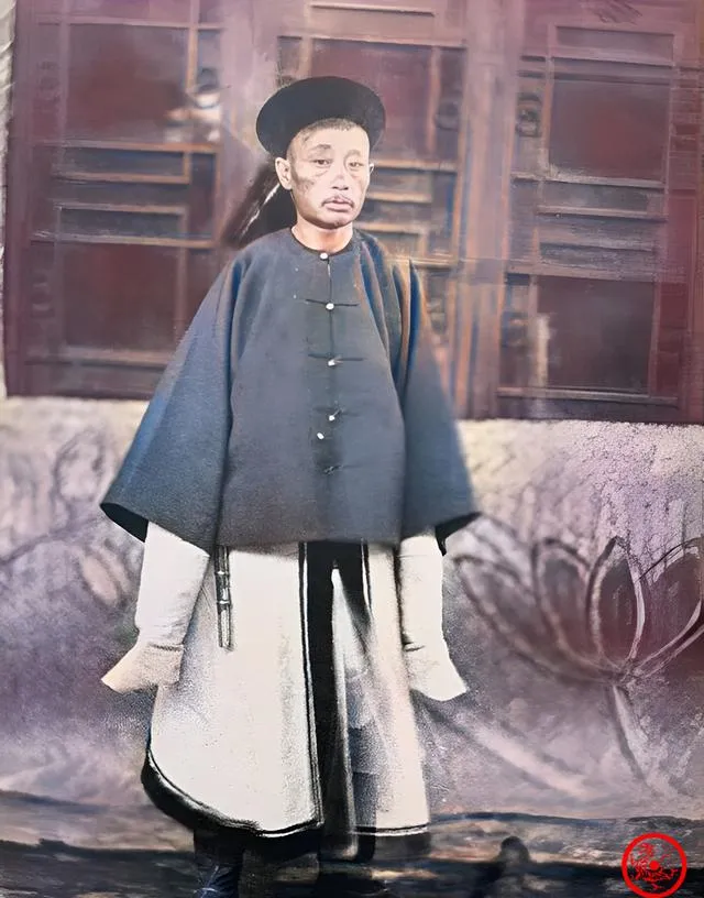 这个穿着深青色大氅的男子叫大内侍卫祥安,身上披风厚重,领口扣子一颗一颗系得齐整,腰侧垂着短器,站在门廊前神情木木的,气势倒没有传说里那样吓人,奶奶看了照片只说一句,宫里当差的人,肩上担子重,脸上不见笑,以前人人仰望这身衣钵,现在看更像是一份辛苦差事。