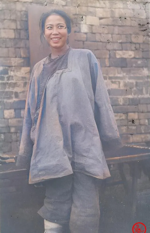这个笑起来眼睛亮亮的姑娘十九岁,穿一身灰蓝粗布,站在青砖墙下露着一口白牙,故事不看说明还真猜不到,她摔断了腿,住了几个月医院,出院那天笑得像有太阳,照片里没见到拐杖,神气劲儿倒把苦日子压住了,妈妈说人有时候就是这样,能把苦嚼成甜,日子就过得去。