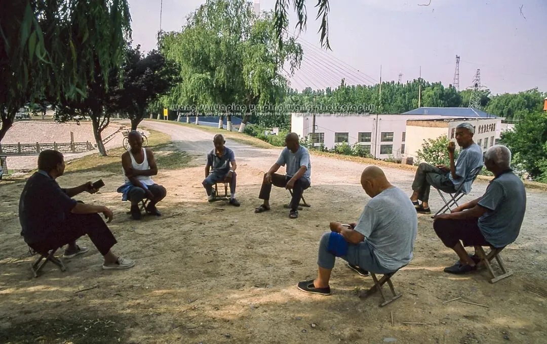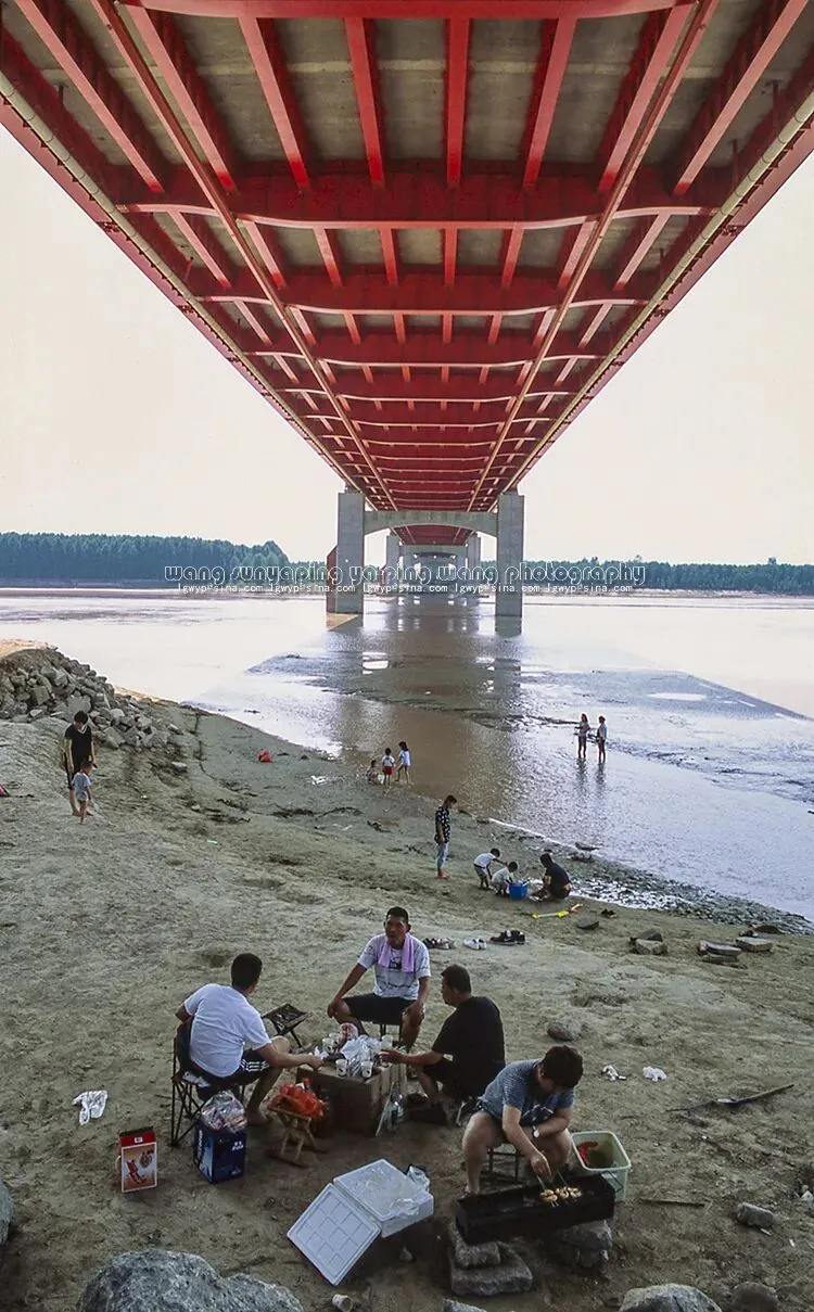 济南水厂引黄闸,附近的村民坐在黄河堤上乘凉聊天。