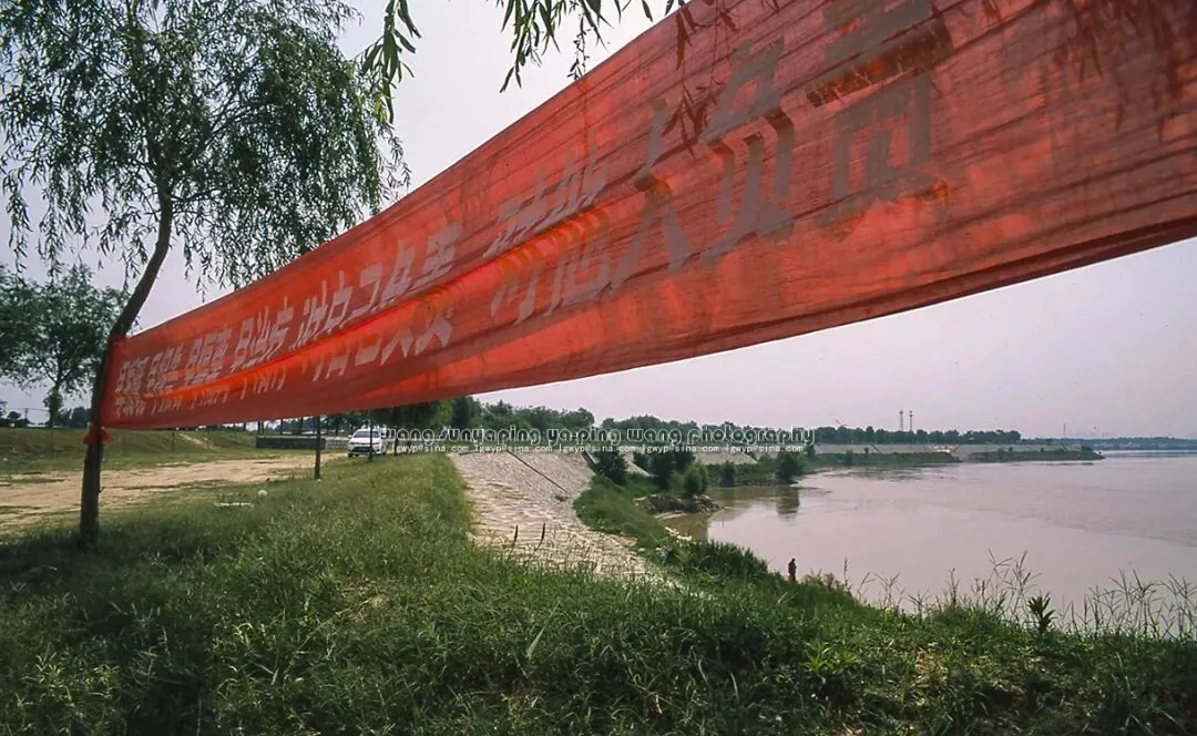 黄河大堤上的新冠肺炎防疫标语。