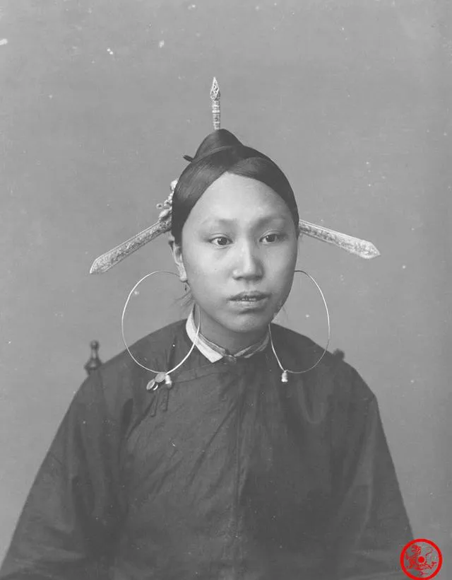 图中福州妇女头上插着三支长长的银簪,左中右各一支,俗称**“三把刀”**,耳朵上是又大又圆的银环,几乎垂到肩头,奶奶说这种装束走起路来会叮当微响,细细的金属互相碰着,像一串轻声细语,别看夸张,放在当年就是体面和底气,现在姑娘戴耳圈讲究轻巧,这么大的分量只在节庆时借来摆摆了。