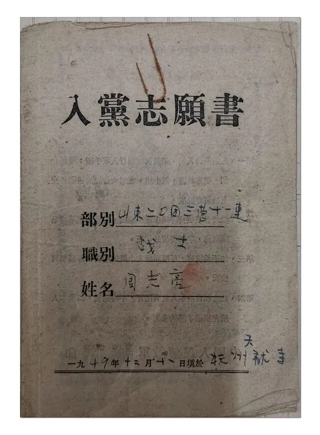 在玉皇山南麓的天龙寺,周光亮在佛像注视下,虔诚地填写了《入党志愿书》。1949年12月12日,中国人民解放军山东警备第二十团三营党委,批准周光亮加入中国共产党。这一年,周光亮荣记四等功一次。