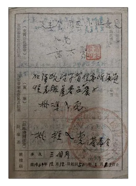 我无法确定,这份入党志愿书是不是周光亮亲笔所书。我挺疑虑的,他一个孤儿、一个没有上过学的人能写这么多字吗?但是,我又相信是周光亮亲笔写的。你看,入党志愿书中周光亮说,“在步(部)队读过人民三字经”,能读三字经不就说明他已经认识很多字了吗?。他的儿子周建忠说,他父亲参加公安工作后,出去搞外调,材料都是自己写的。在学习方面,我们几个子女比父亲差了很多很多。