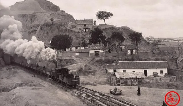 这列黑家伙是蒸汽机车,拉着长长的货厢从隧道口钻出来,白烟像棉花团子往天上堆,铁轨贴着山根子一路蜿蜒,桥那边隐隐是黄河水面,爷爷说第一次见火车时心口发紧,远远就听见“当当”声贴着铁轨传来,站得近了又烫又呛人,等车过完风一收,地上落一层煤灰点子,现在高铁“嗖”的一声就没影了,那时出趟门得先问清楚风向,别把烟尘吸了个饱。