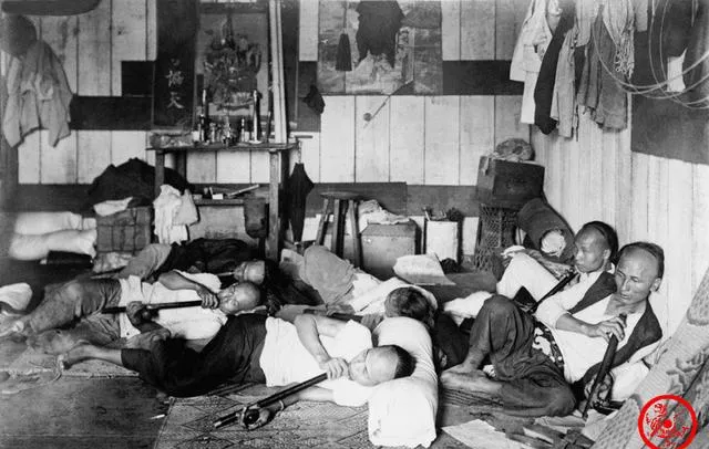 这几位坐炕上围成一圈,面前摆着骨牌铜钱和茶碗,手里拈着细长竹签,案角还斜靠着水烟杆与鸦片烟枪,屋里挂满年画和吉语,热闹却有点腻人,牌一摔铜钱一响,笑声就跟着冒出来,妈妈说看这阵势像是押宝的玩法,输赢不过几文钱,图个兴头,真正上瘾的是一旁的烟,吸进去咯,眼皮一搭就沉了,这些东西如今在博物馆玻璃后头躺着,被叫做“陈列品”,那时却是真正的日常。