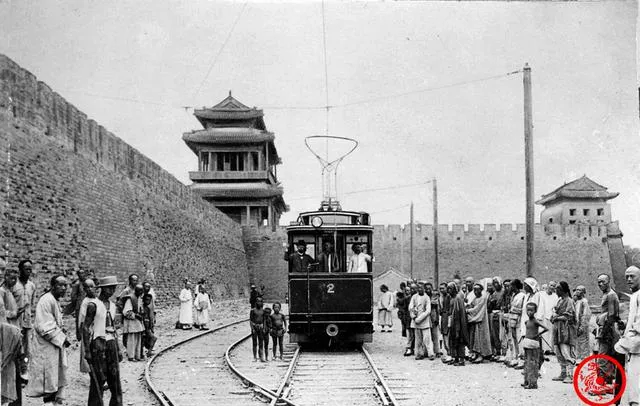 这辆拉着杆子的有轨电车从城门根下弯过去,车头挂着号码,旁边站着一圈看热闹的人,孩子伸长脖子,老人眯着眼,电车是从马家堡到永定门这段先通的,算北京最早的线路,妈妈说,那会儿人下火车接着换电车进城,脚底下省了不少力气。