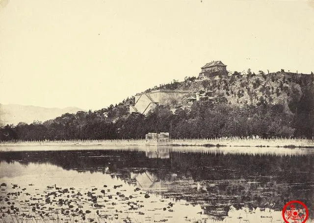 图里这团山影是万寿山,山脊上建筑的轮廓还透着气势,近处水面铺得开平平整整,像一张摊开的银纸,爷爷说,打小就听老人念叨**“山在,殿没了,水还照人”**,一句话把景和人都说尽了。