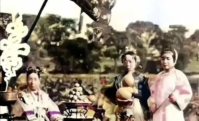 桌上堆着圆滚滚的果子,旁边大葫芦被擦得锃亮,寿字像盘着的藤蔓,绕到屏风上,宫女立在一侧,衣襟颜色淡得像水过了一遍的花,场面铺张得很,转念一想,外头战事紧张,里头还忙着做寿,照片一张,气味就浮出来了,香是香,不是这个时候的香。
