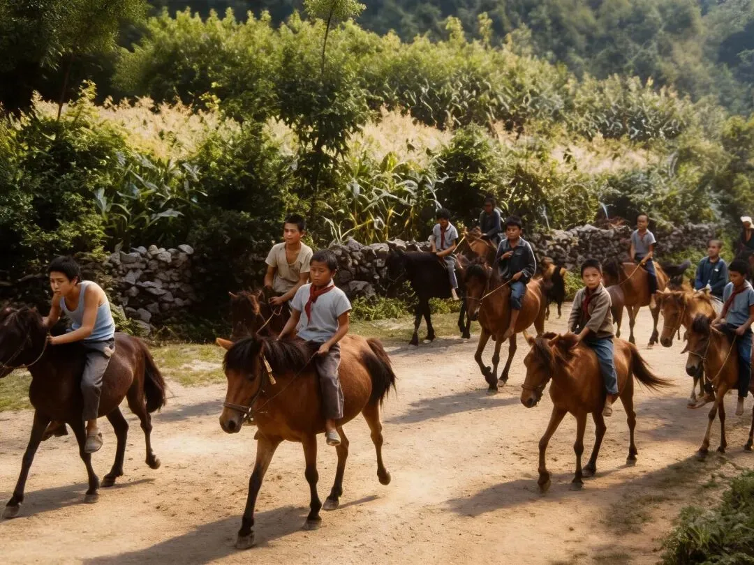 老照片中最动人的画面,莫过于孩童骑矮马上学的场景:棕褐色的小马四肢短粗,鬃毛如墨,马背上端坐着系红领巾的孩子,马蹄踏过青石板路,溅起细碎的尘土。德保矮马——中国唯一原生矮马品种,与英国设特兰矮马并称“世界矮马双璧”,更因承载着汉代“果下马”的基因密码,被誉为“马中活化石”。据德保县志记载,明清时期德保矮马已成为贡马。