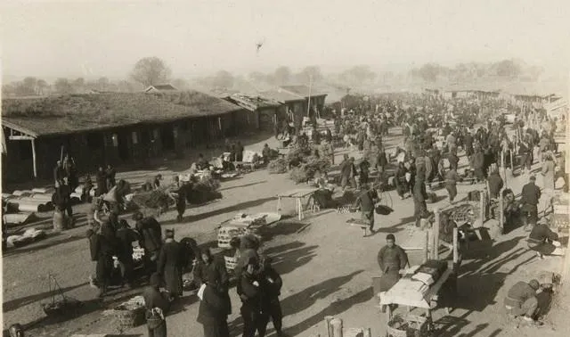 图中这一大片摊位就是黑水镇的老集市,土路拍打成硬面,摊子一排排码开,杆秤挑在肩头,吆喝声顺着风串到屋檐下,旁边的房顶是茅草屋顶,冬天一刮风就“沙沙”响,爷爷说那会儿来赶集,最怕下雪压顶,不敢在屋檐下久站,买把菜刀就往怀里一塞,脚底抹油就开溜.