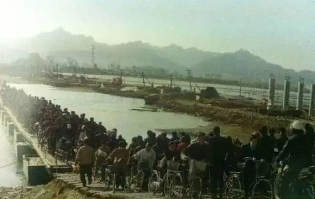 这条临河的便桥上全是推车的人,车把上挂着菜篮,脚下咯吱咯吱的木板声绵长,等到东大桥修好,大家第一天就去走,站在栏杆边看水,谁都觉着这桥修得结实.