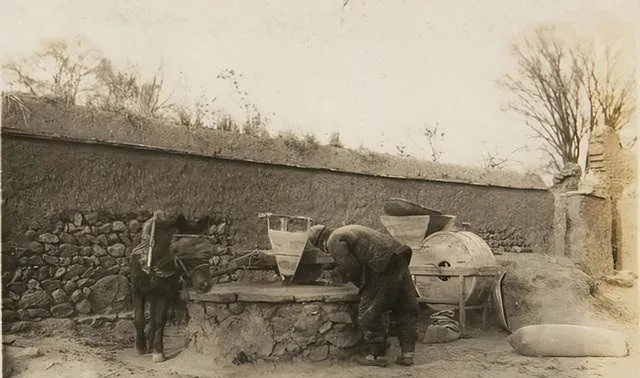 图中石磨盘旁拴着一头小毛驴,老人弯着腰投料,磨齿“吱呀”转,玉米面从缝里悄悄落下,奶奶说这面做的贴饼子最香,锅一揭气味冲鼻.