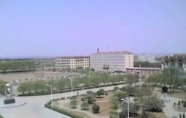 门口两棵柳树垂下来,牌匾在阳光下发白,进门是碎石小径,脚踩上去咯吱作响,办公楼窗户都开着,风把窗帘吹成一朵朵波浪.