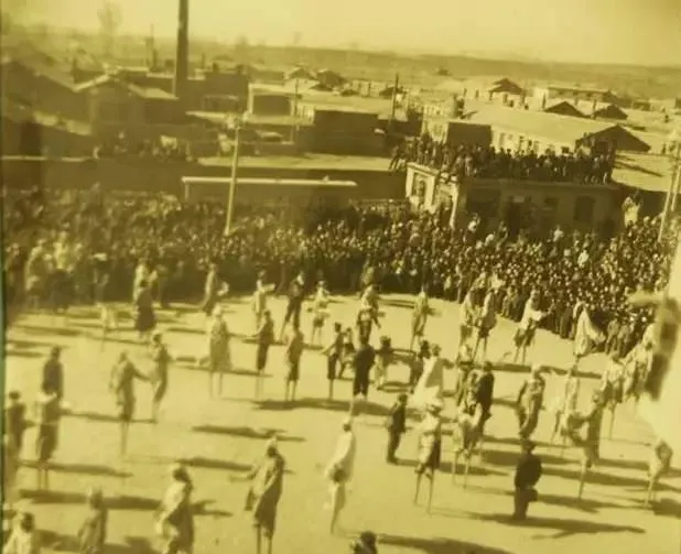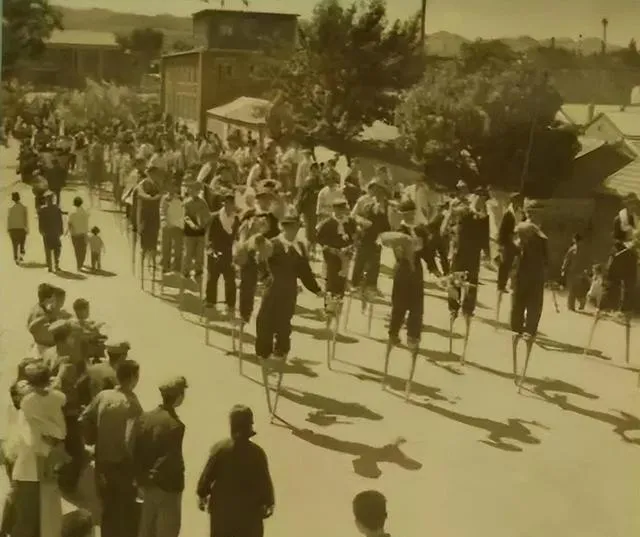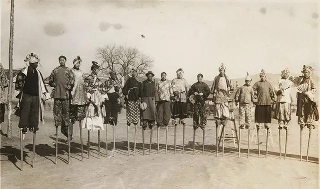 这一排踩着高跷的演员,衣裳鲜亮,脚下细杆插得深稳,围观的人笑着拍手,鼓点一急,队伍跟着迈大步,热闹就这么滚起来了.