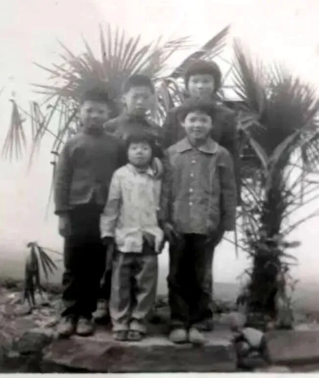 这是一张充满年代感的黑白合影,画面里是六位邢宅的孩童。其中左边第一位是张晓斌10岁时的模样,左边第二位是他的妹妹。背景是胡齐清家的房子,旁边还种了2颗棕树。这类植物在江南地区较为常见,既作为乡土树种种植,也常出现在这类具有纪念意义的合影背景中。岁月如梭,如今一转眼已过去了38年。