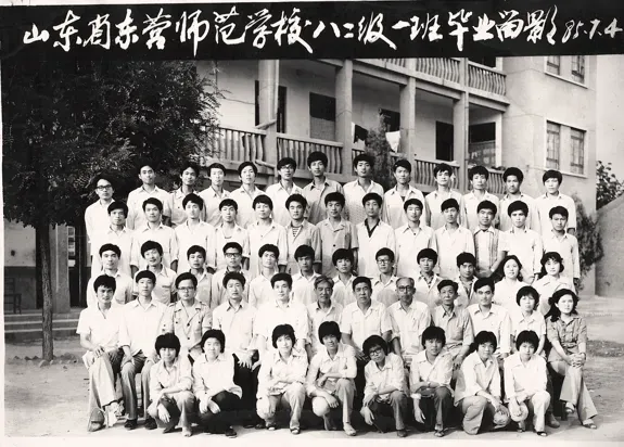 1985年7月4日山东省东营师范学校八二级一班毕业留影(照片提供者:裴培科)