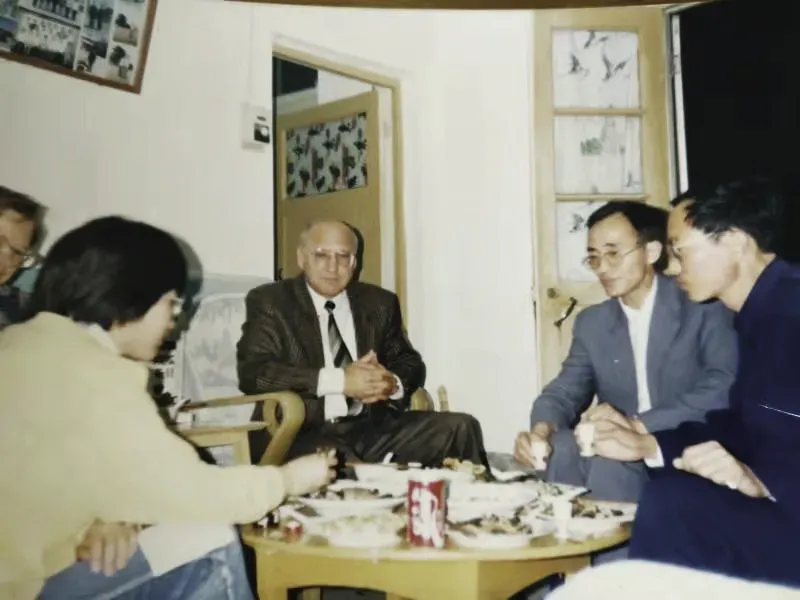 1992年10月18日,德国奥格斯堡大学特普费尔教授夫妇来桓台实验小学访问。张连聿校长在家设宴盛情款待。特普费尔夫妇对中国美食赞不绝口。(照片提供者:金树侠)