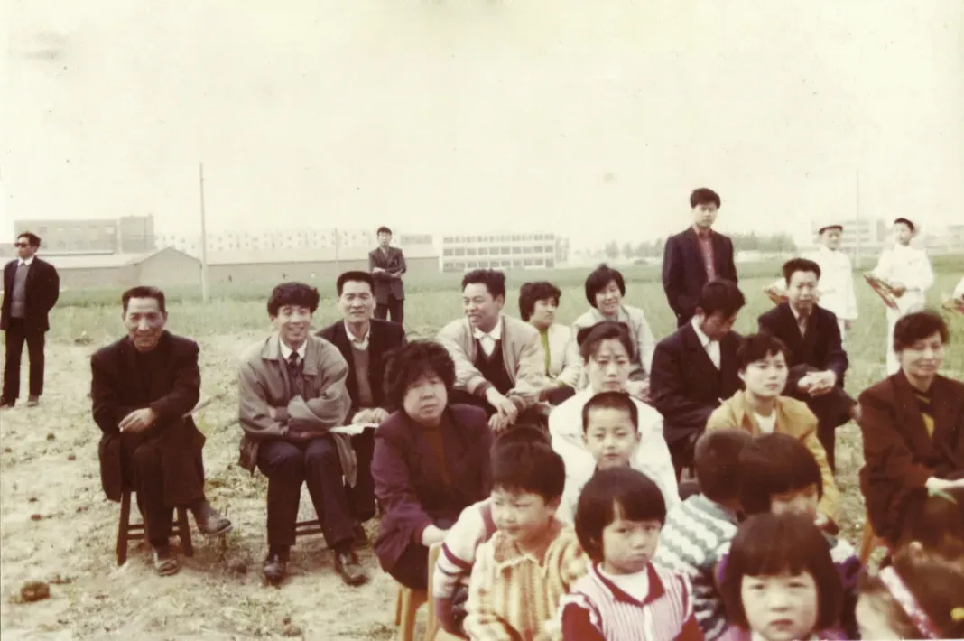 桓台县机关幼儿园(今桓台县实验幼儿园)自1992年11月开始筹建,1994年6月建成启用。占地13000平方米,总建筑面积3735平方米,位于公安街178号。此照片为1993年4月,桓台县机关幼儿园奠基仪式,当时这里还全是农田,如今已楼房林立成为县城中心。(照片提供者:魏彩云 王锡广)
