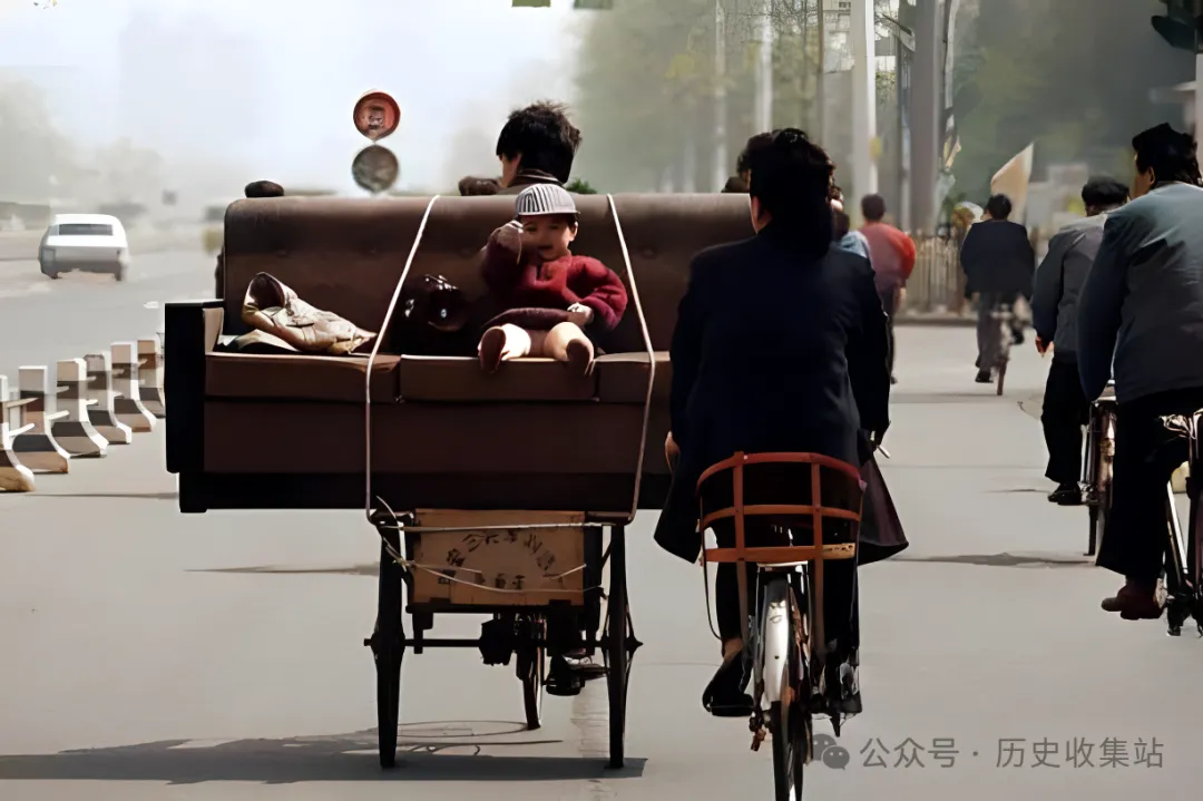 1990年的北京,繁忙的街头,一位市民骑着一辆小三轮车,车后载着一张崭新、宽敞的沙发。沙发的边缘,他的儿子兴高采烈地坐着,小脸上洋溢着满足和快乐的笑容。这张沙发对于当时的家庭来说,无疑是一件难得的奢侈品,它象征着家庭生活的舒适与改善。