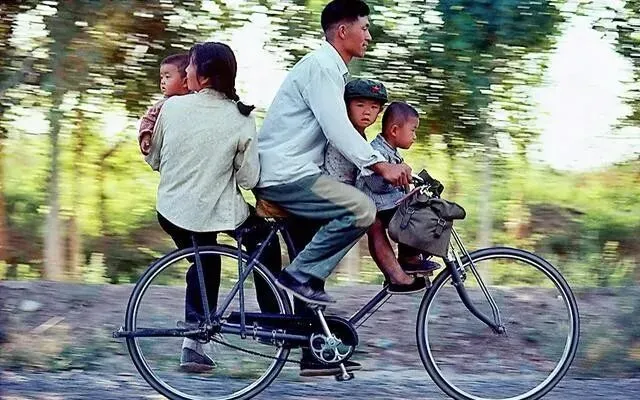 一辆自行车 , 前面坐一个 , 后面带一个 , 中间站一个 , 全家出行就靠它。
